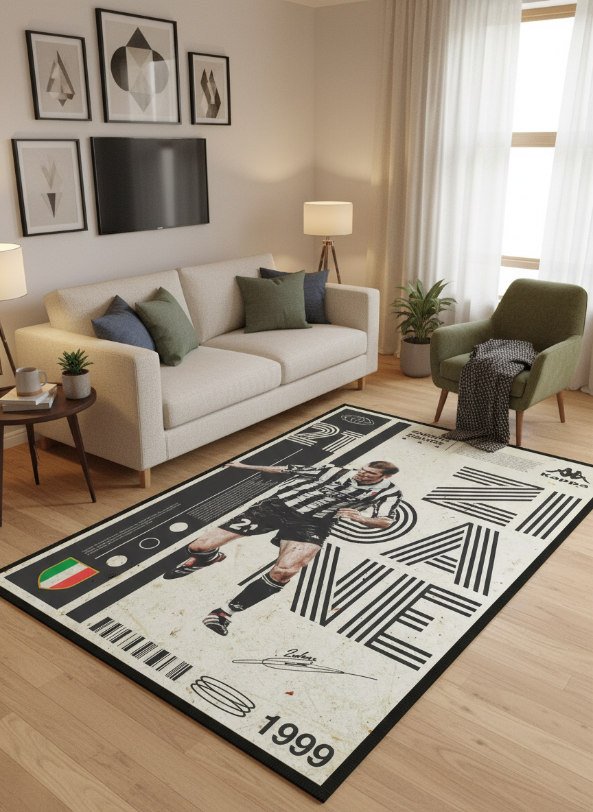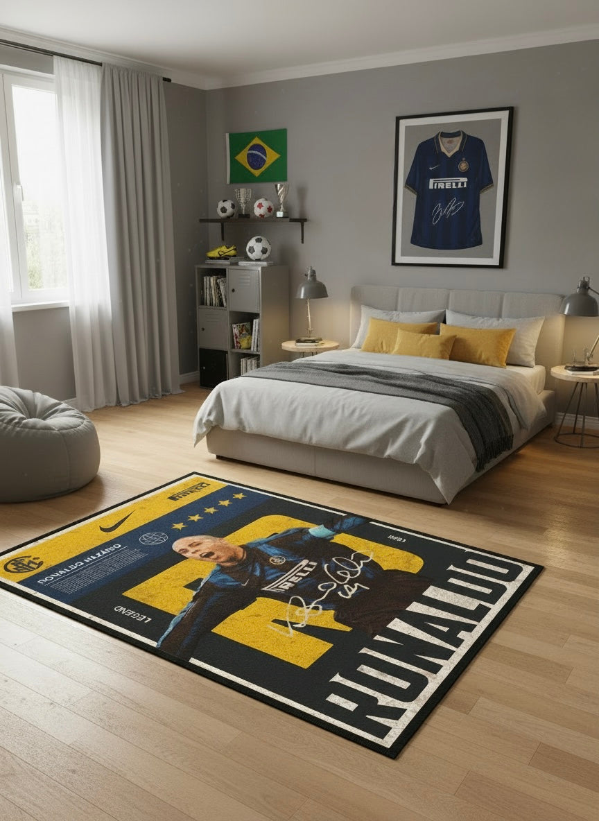 I’m obsessed with this R9 rug. As someone who loves retro football shirts, this piece hits different. It has that proper nostalgic, early-2000s football vibe that just feels iconic. The design captures that golden era perfectly.
